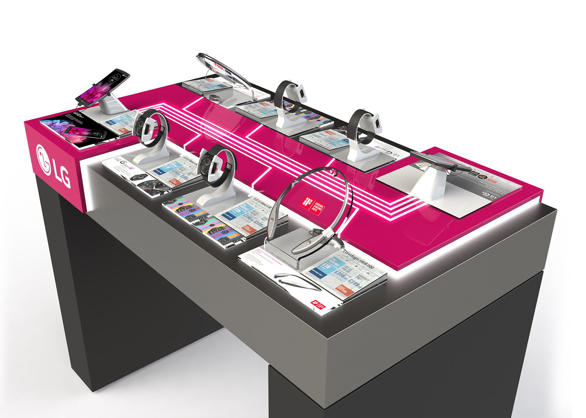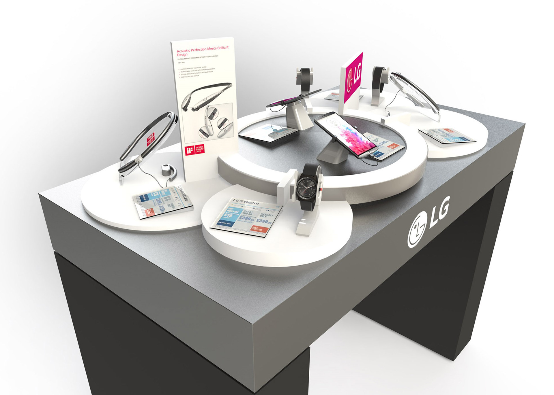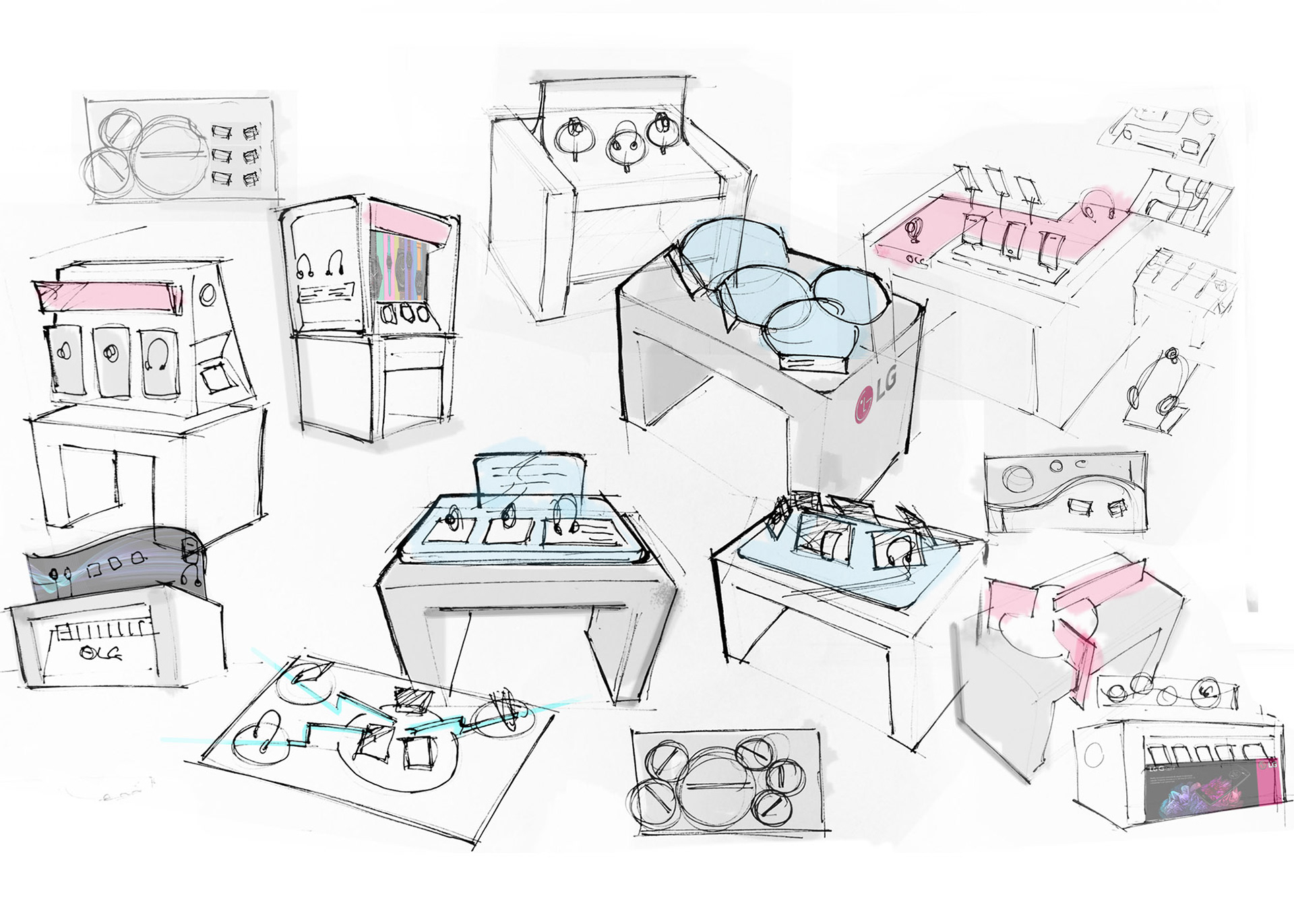 Concepts for an interactive play-table to showcase LG mobile phone and wearable smart devices. Concept development always starts with quick sketches to allow for rapid ideation before being refined in 3D (SolidWorks).